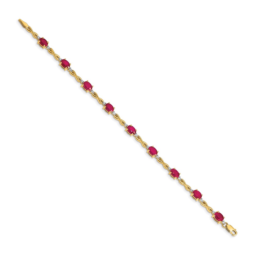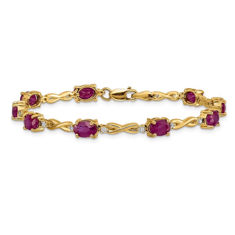 14k Complete Diamond and Oval Ruby Infinity 7 inch Bracelet