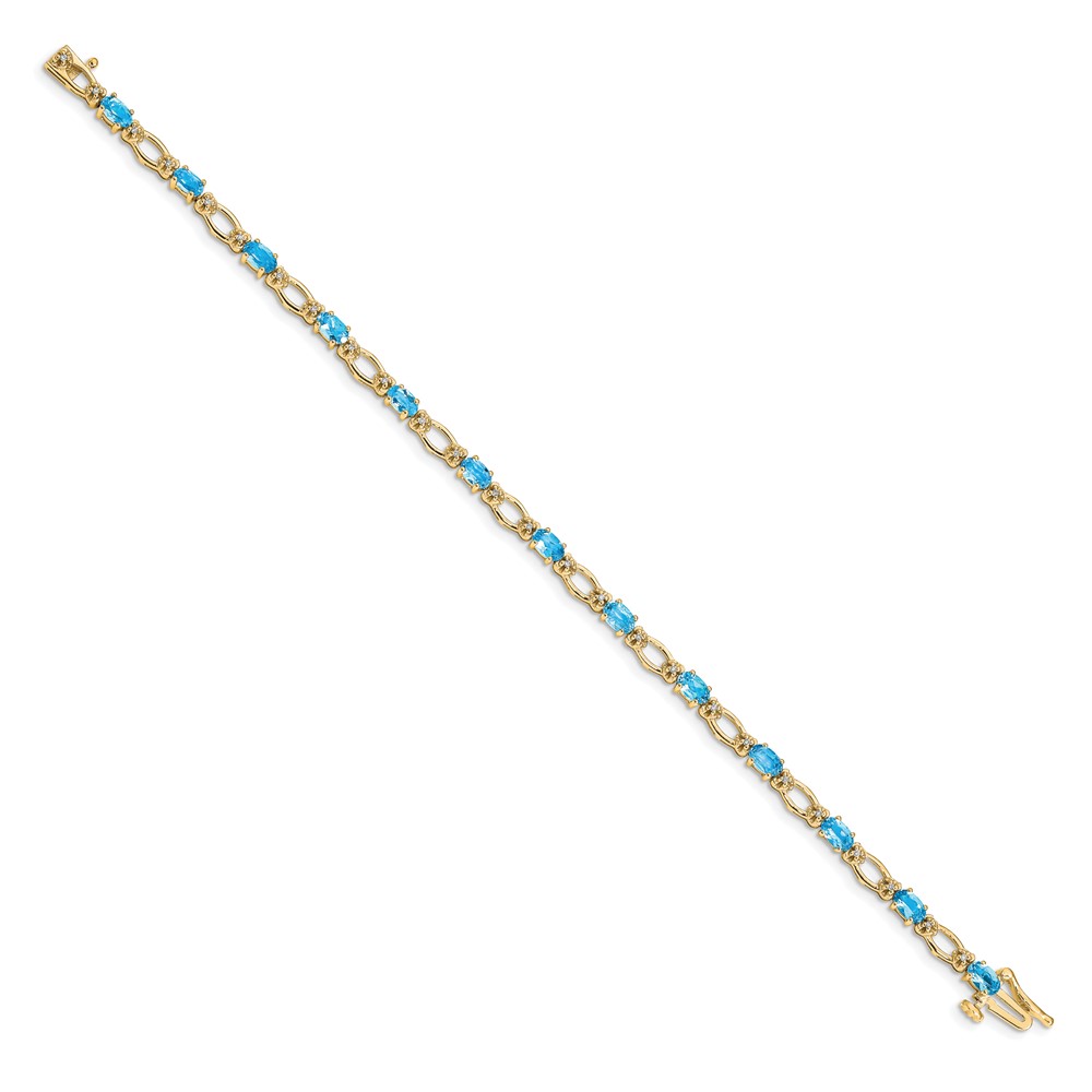 14k Complete Diamond and Oval Swiss Blue Topaz Heart Accent 7 inch Bracelet