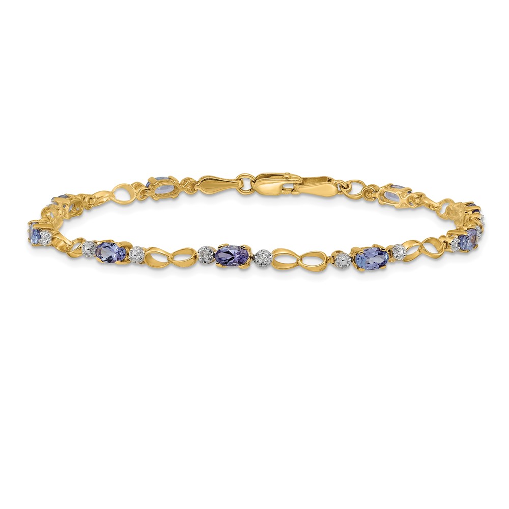 14k Complete Diamond and Oval Tanzanite Open Link 7 inch Bracelet