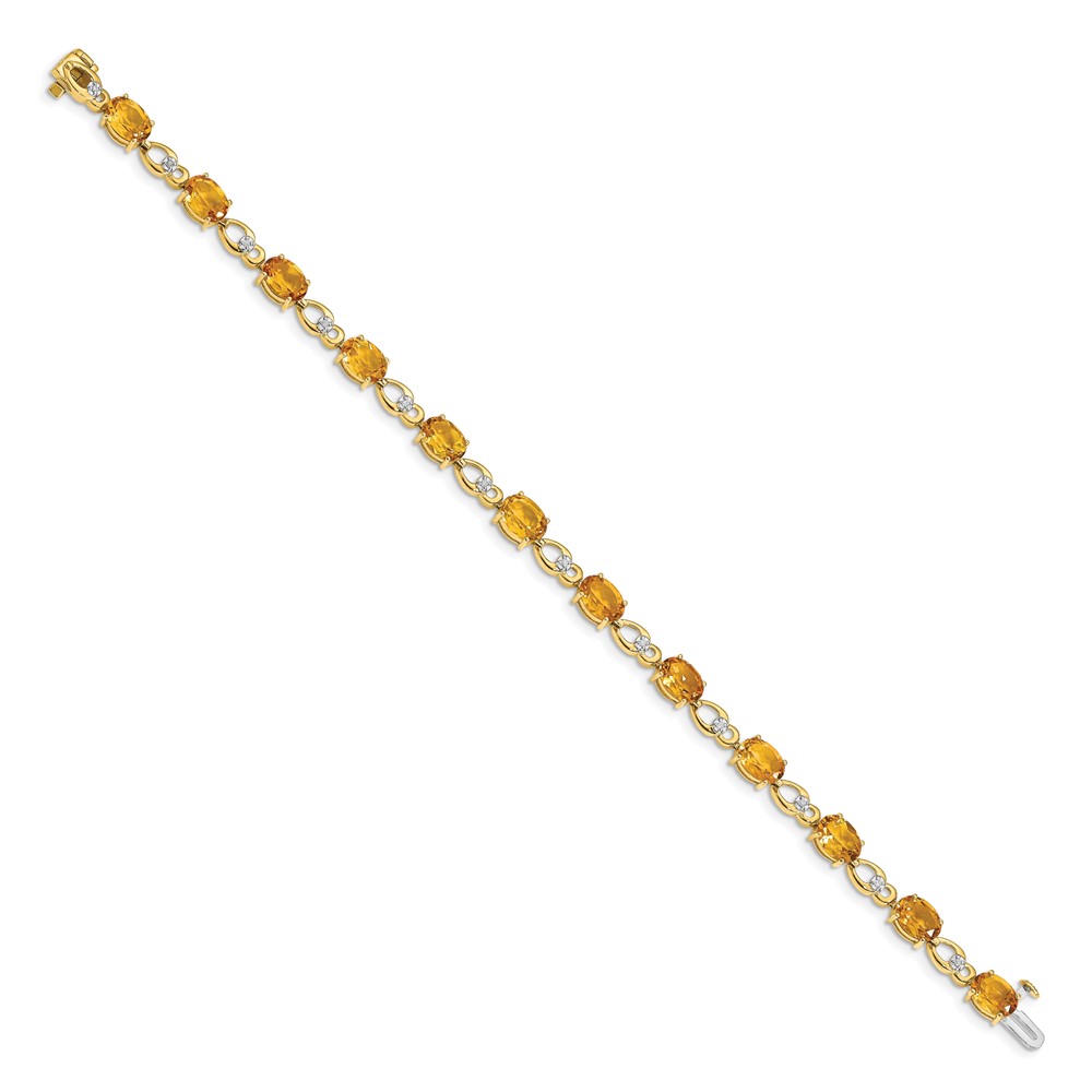 14k Complete Oval Citrine and Diamond Fancy Link 7 inch Bracelet