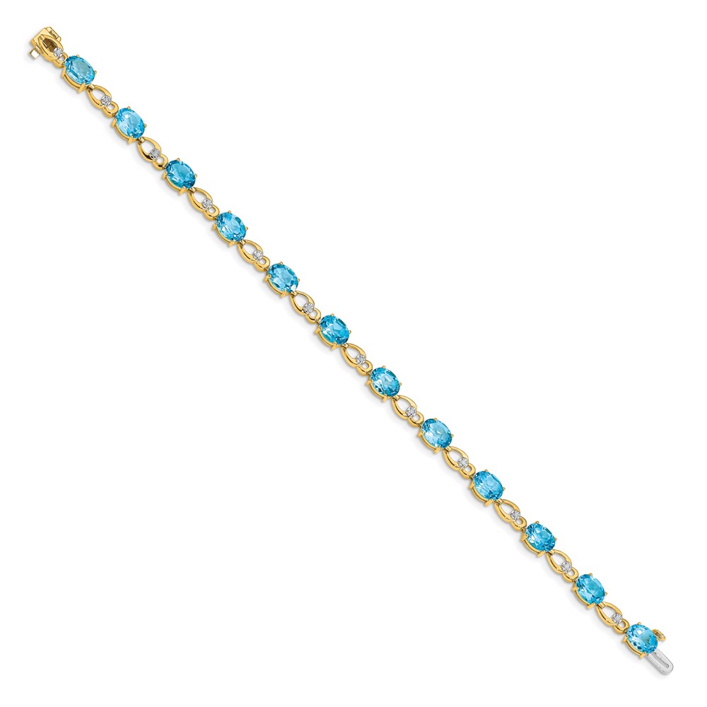 14k Complete Oval Swiss Blue Topaz and Diamond Fancy Link 7 inch Bracelet