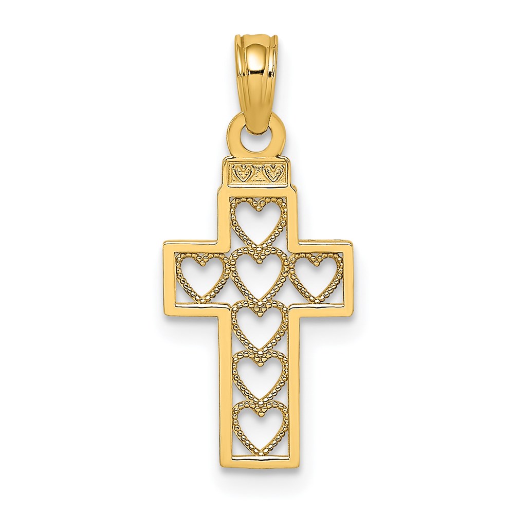 14K Cut-Out Heart Design Cross Charm