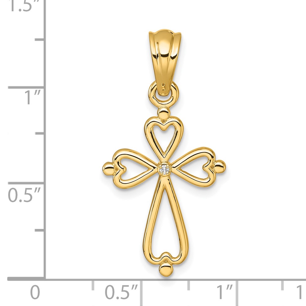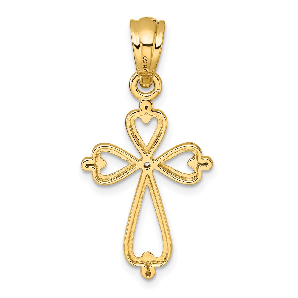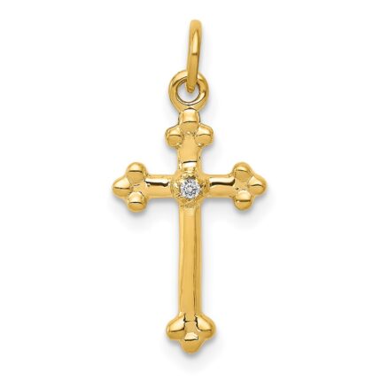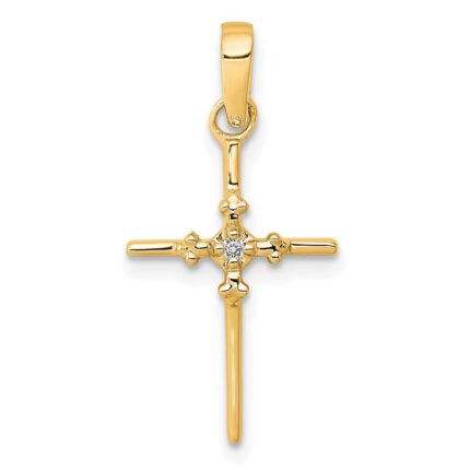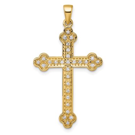 14k White Gold 1/10 carat Diamond Filigree Budded Cross Pendant