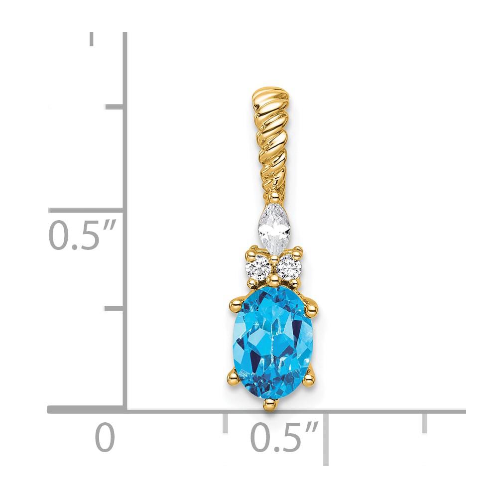 14K Diamond and 7×5 Oval December/Blue Topaz Twisted Chain Slide