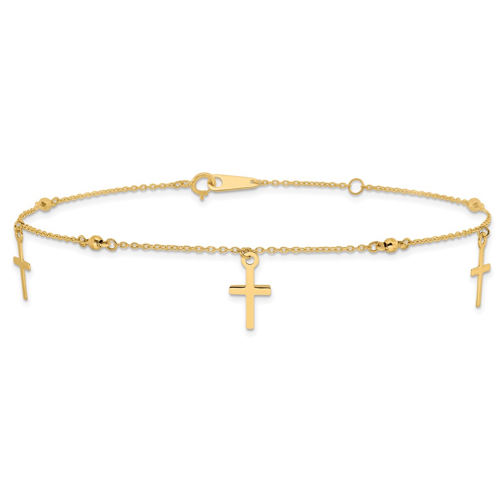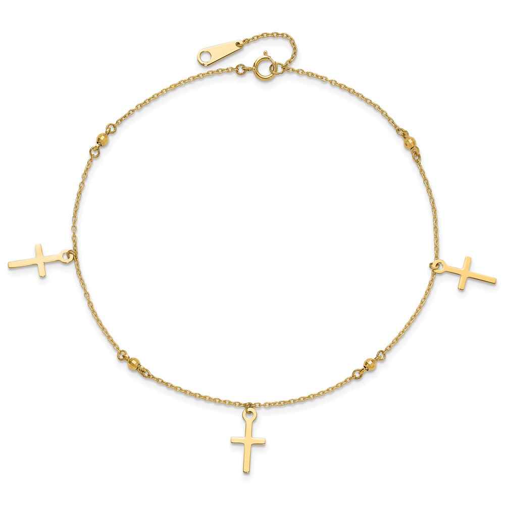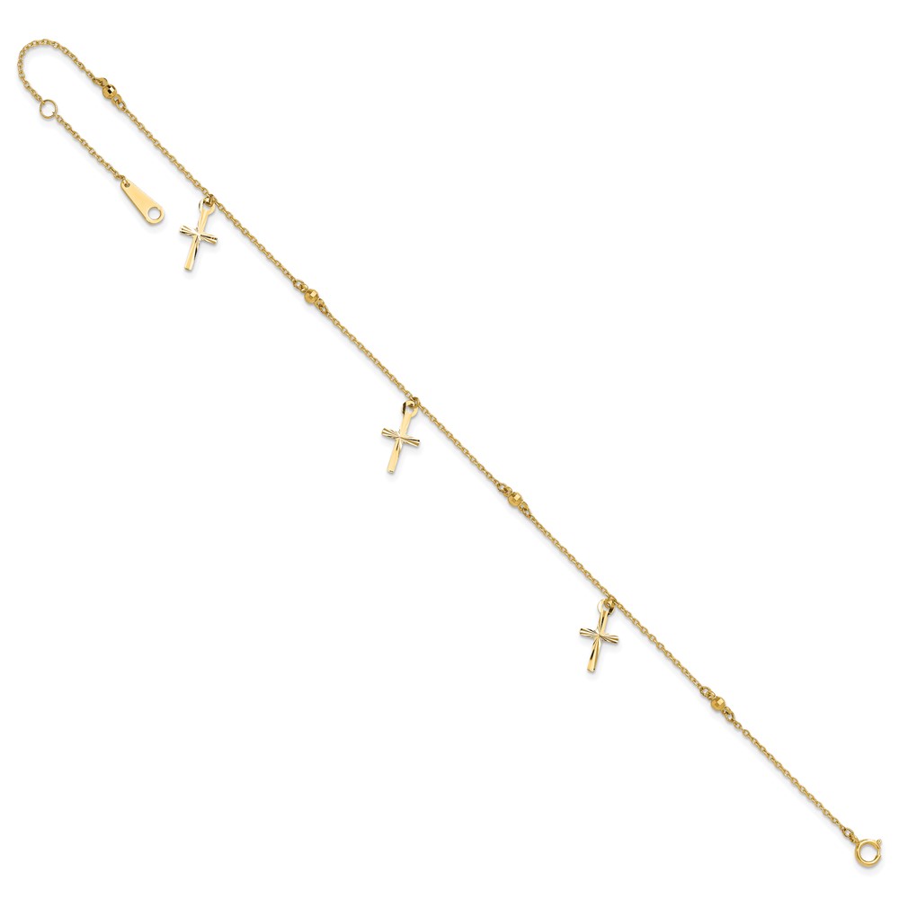 14k Diamond-cut 3 Cross Dangles and Beads Plus Extender – Total Anklet
