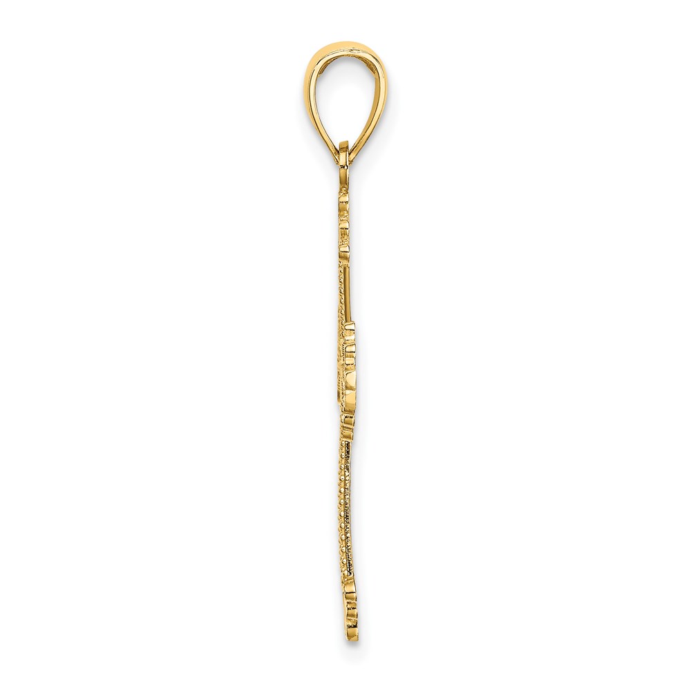 14K Diamond-cut Cut-Out Stripes Cross with Heart Charm