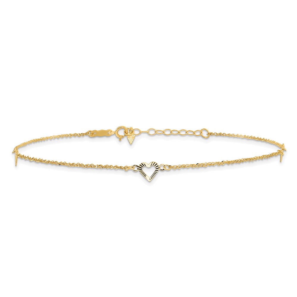 14k Diamond-cut Hearts 3-Station Plus Extender – Total Anklet