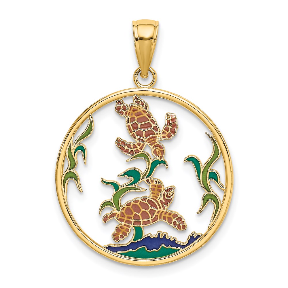 14K Enamel Sea Turtles In Circle Charm