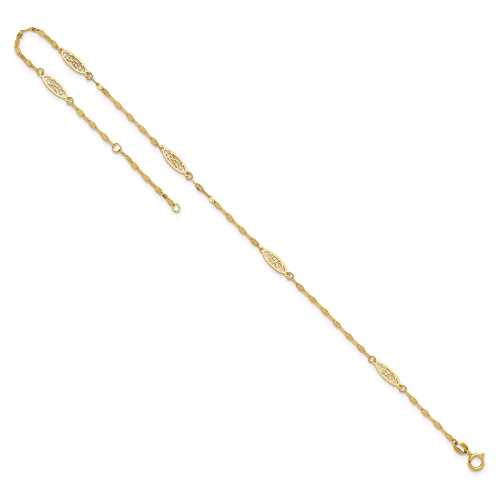 14K Fancy Filigree Link 5-Station Plus Extender – Total Anklet