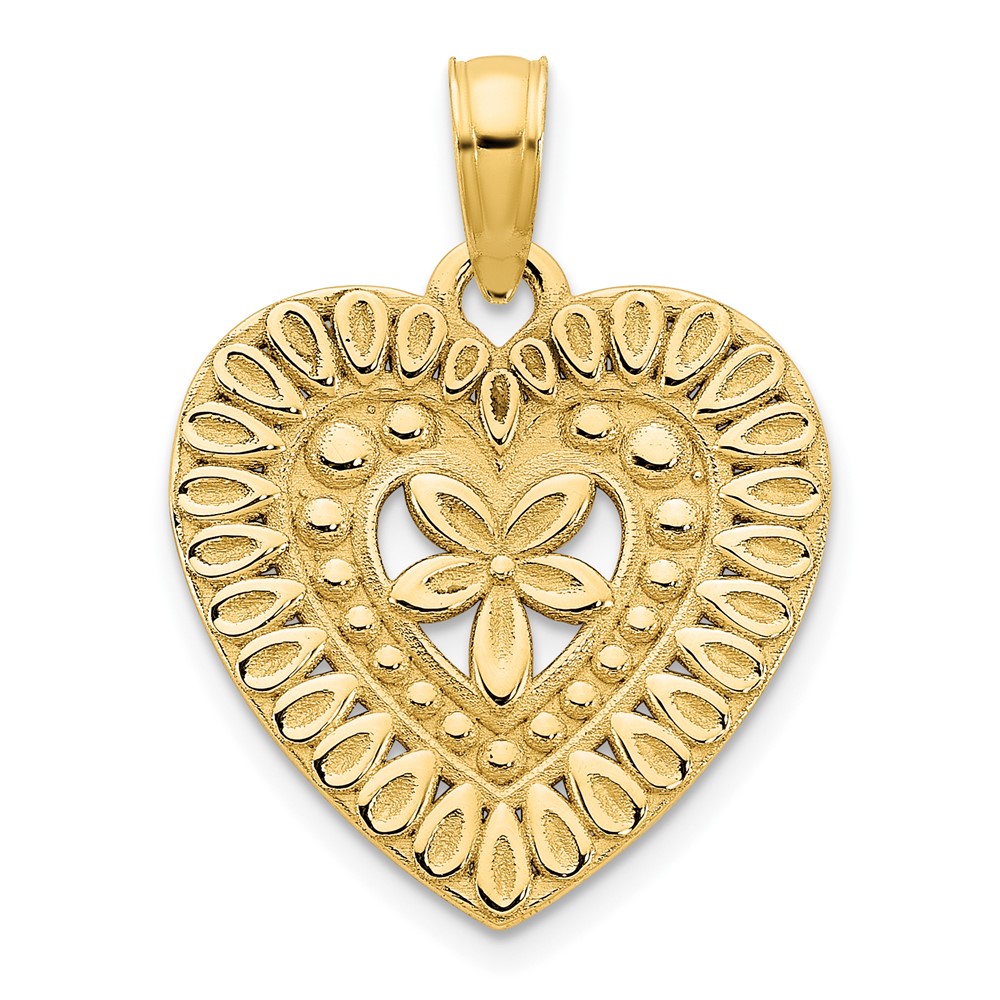 14k Fancy Floral Heart Pendant