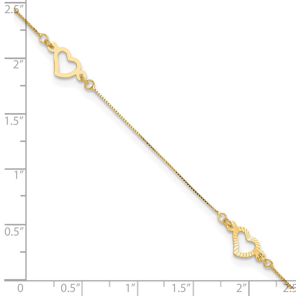 14k Diamond-cut Open Heart 3-Station Plus Extender - Total Anklet
