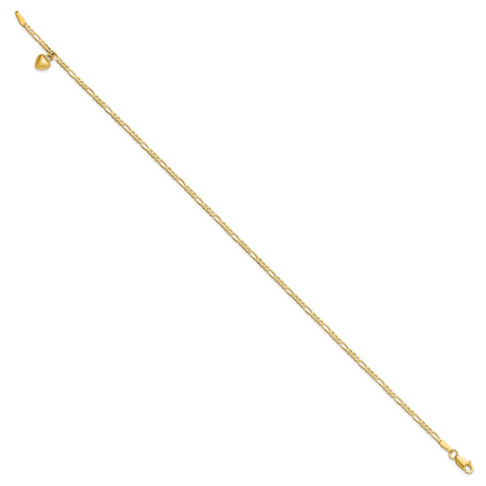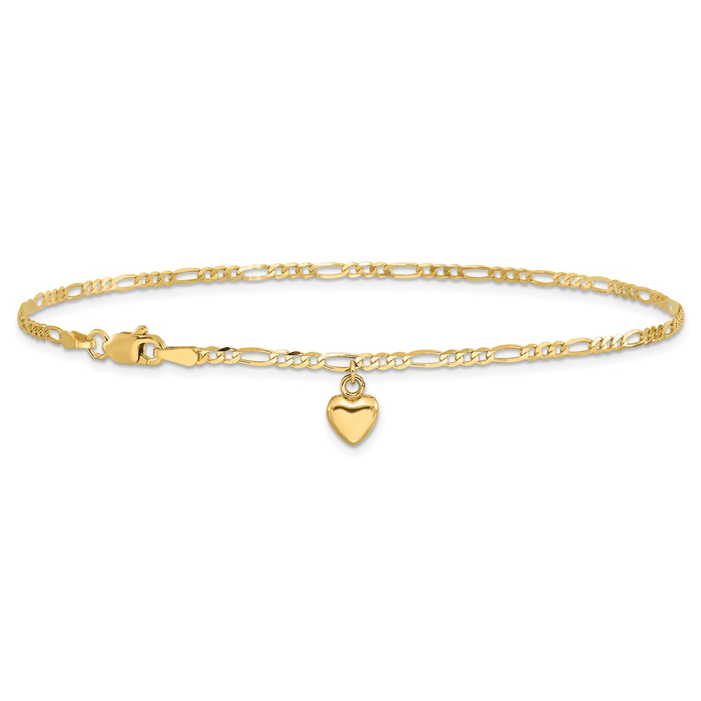 14k Figaro Link Chain with Dangling Puffed Heart Anklet