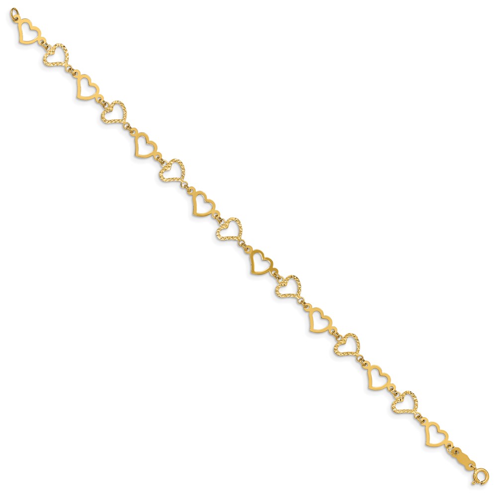 14K Flat Diamond -cut and Polished Open Hearts 7.25 inch Bracelet