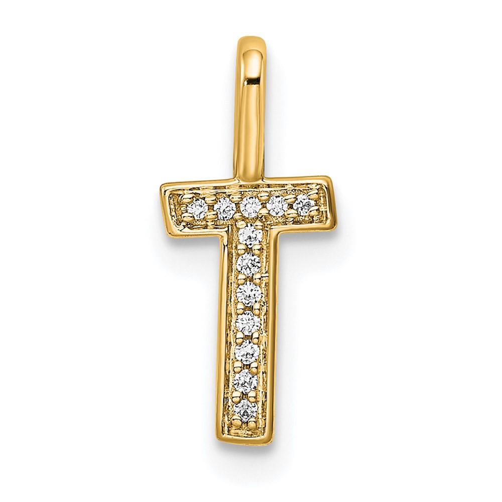 14K Gold Diamond Letter T Initial Pendant