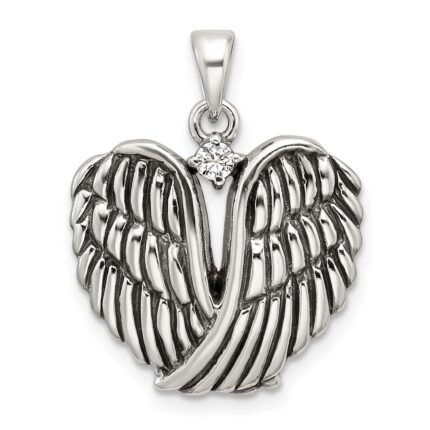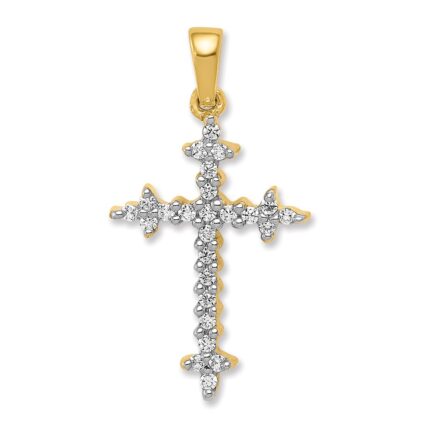 14k and White Rhodium 1/5 carat Diamond Fleur de Lis Cross Pendant
