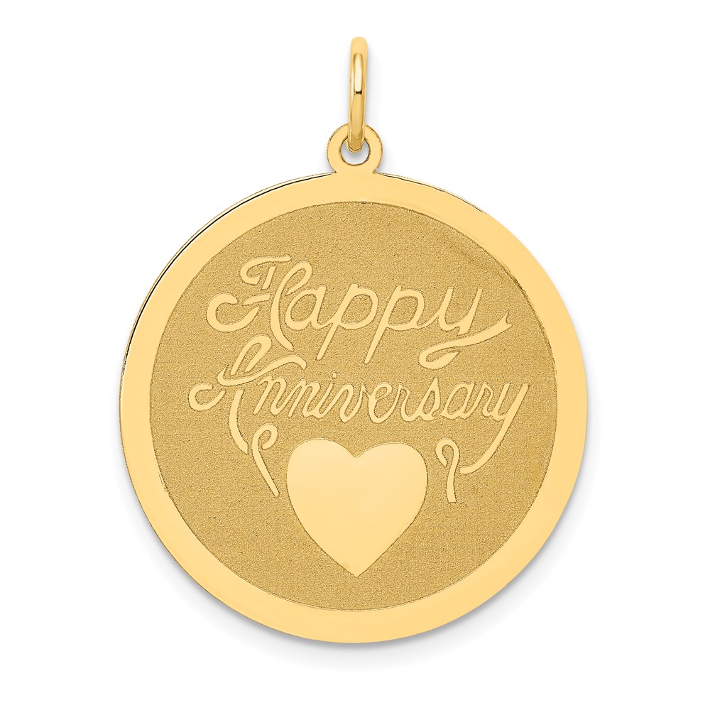 14K HAPPY ANNIVERSARY with Heart 25mm Engravable Disc Charm