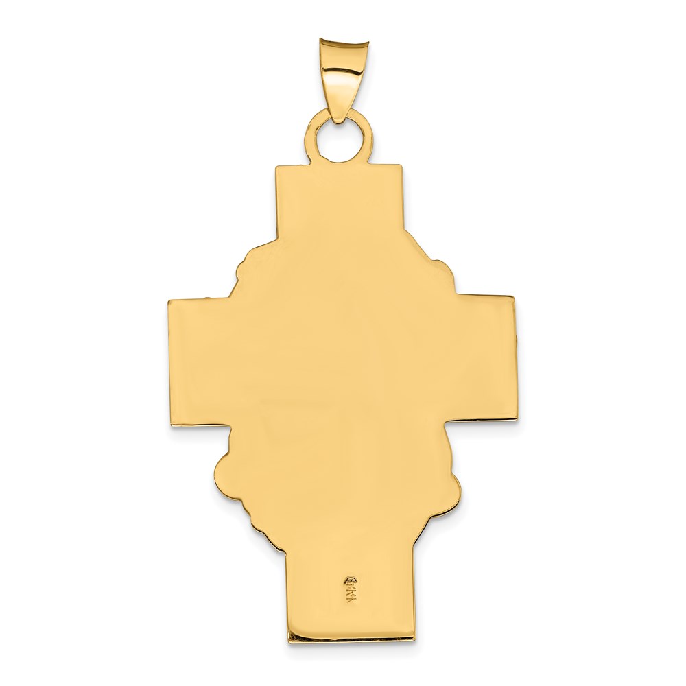 14k Hollow Polished and Satin Jesus Cross Medal Pendant