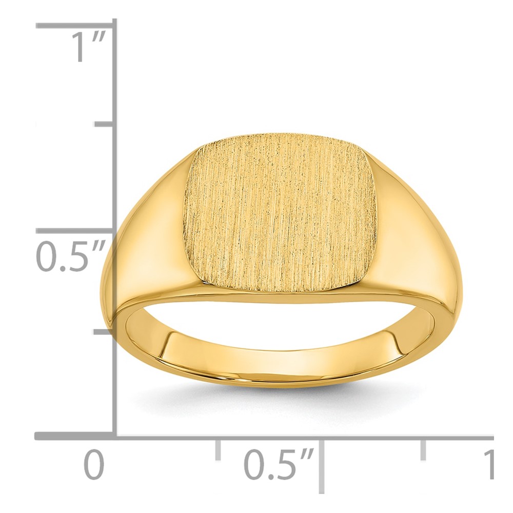 14k IBGoodman 12x12mm Men’s Satin Top Cushion Signet Ring