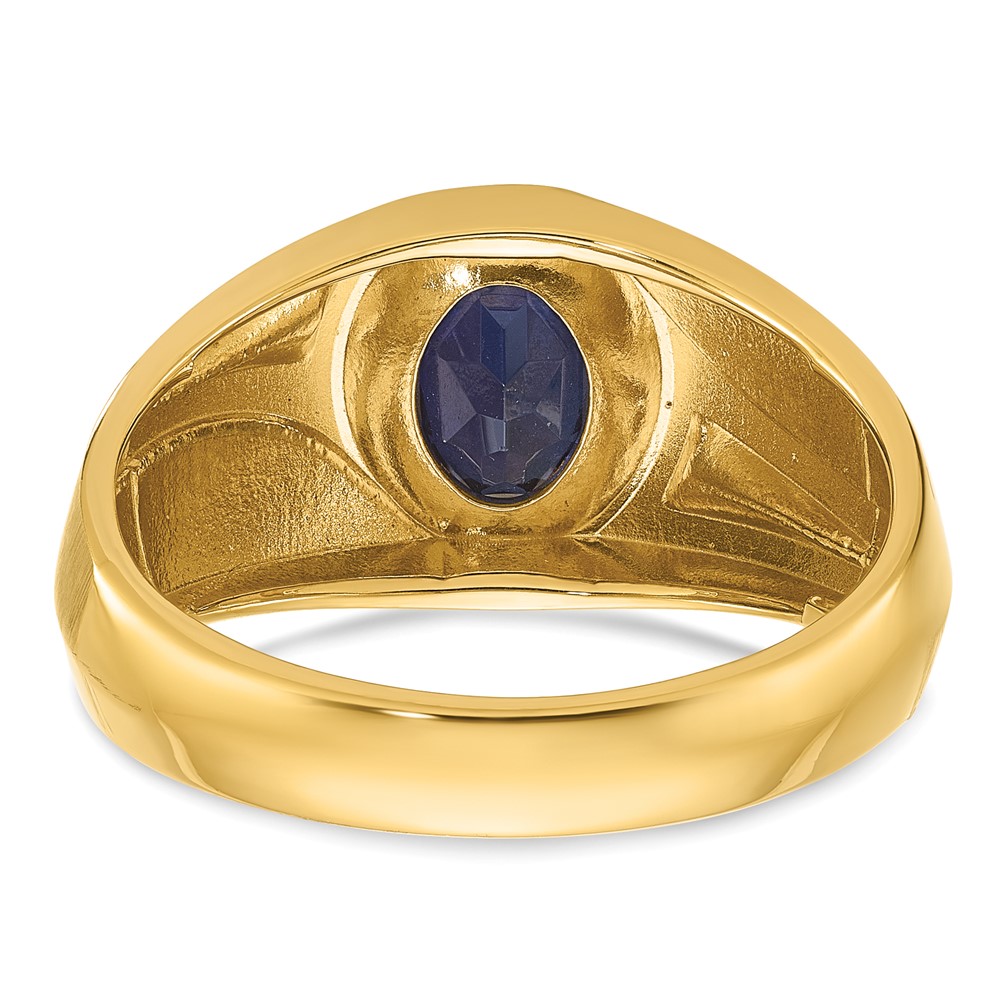 14k IBGoodman Men's Created Sapphire and Diamond Satin Complete Ring