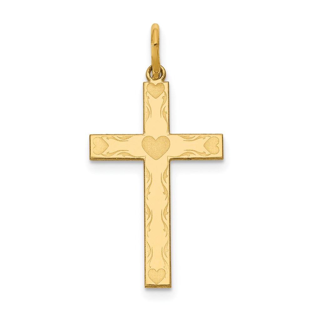 14K Laser Designed Cross with Hearts Charm