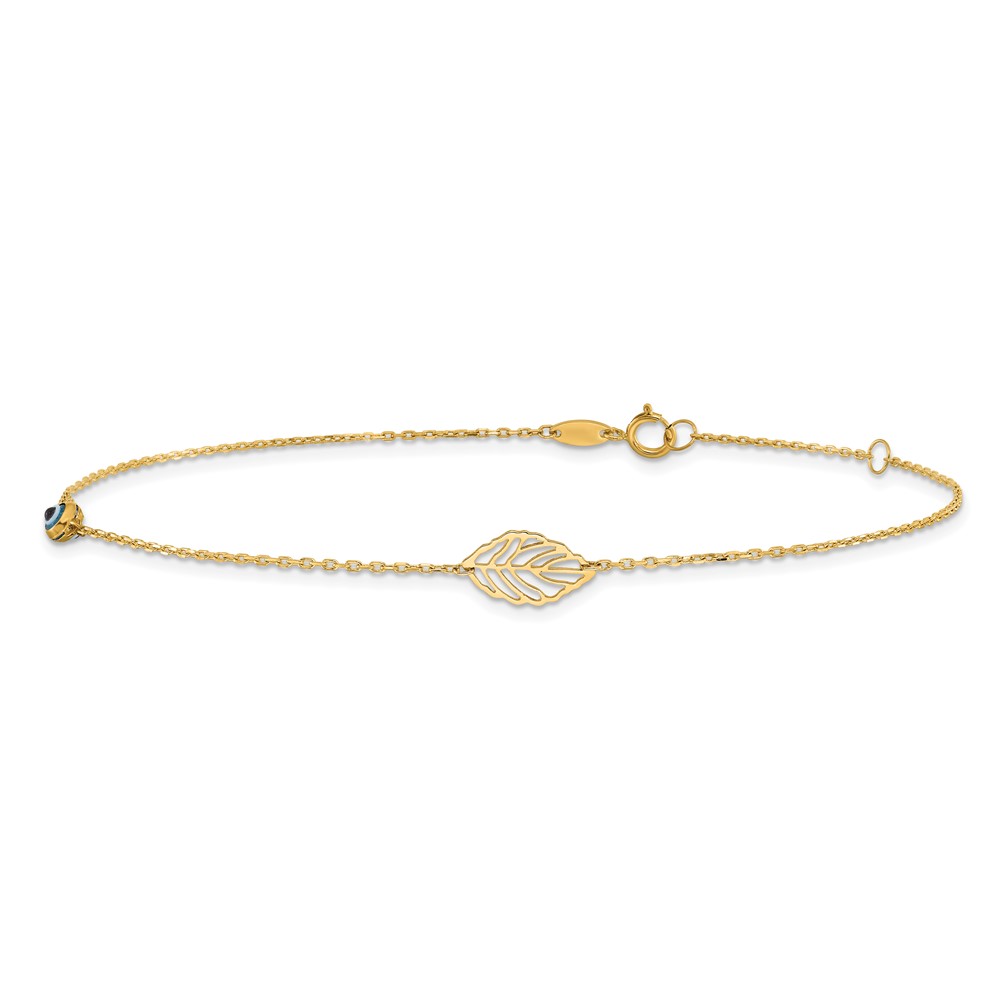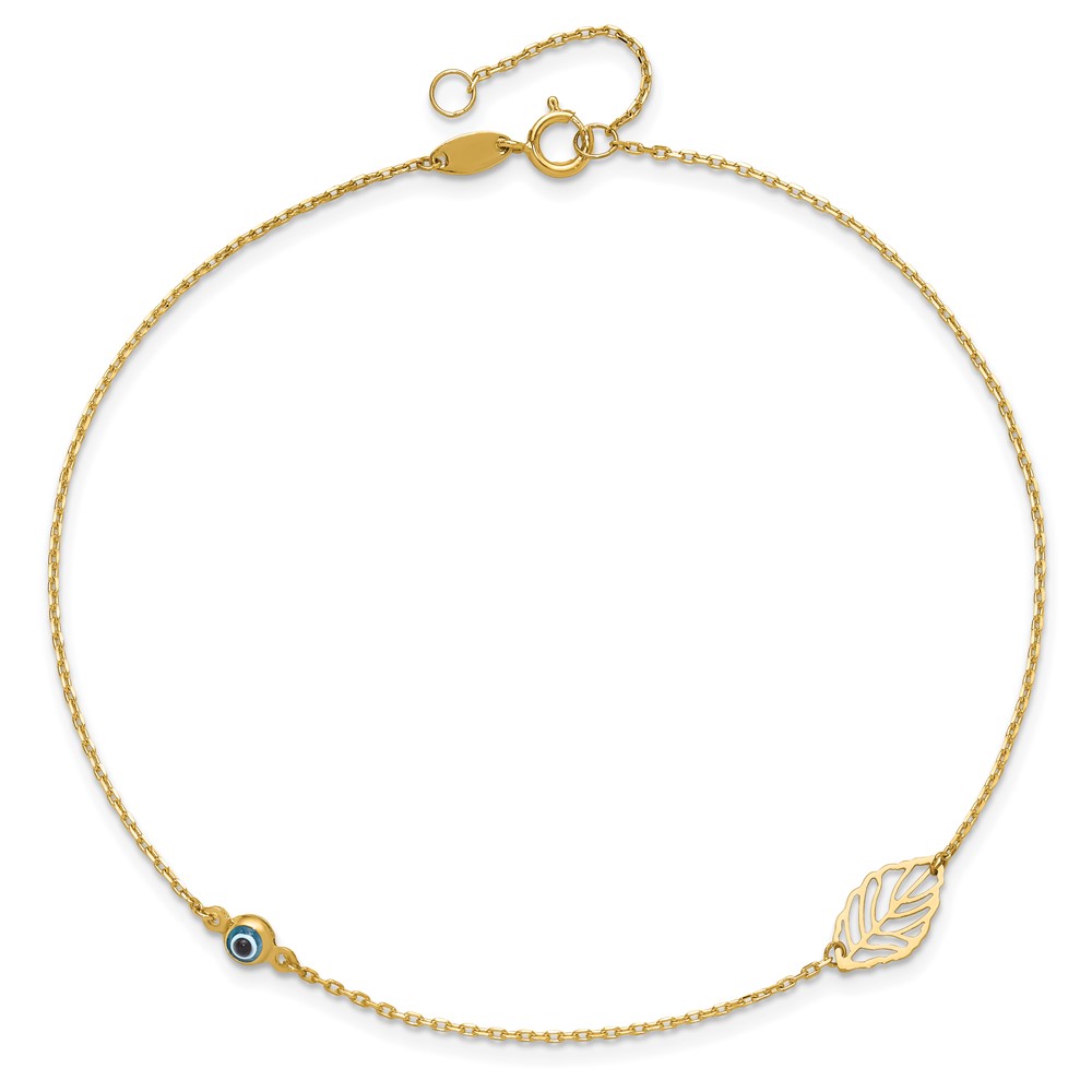14k Leaf and Glass Eye Bead Plus Extender – Total Anklet