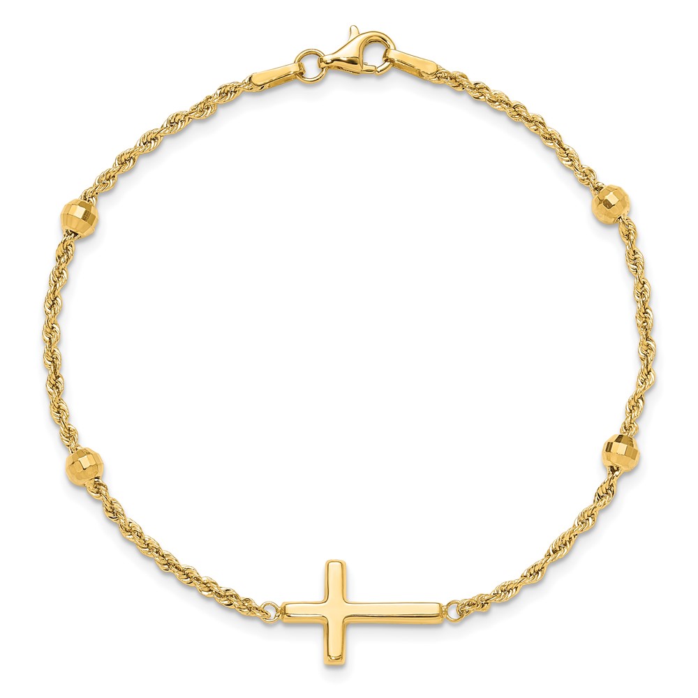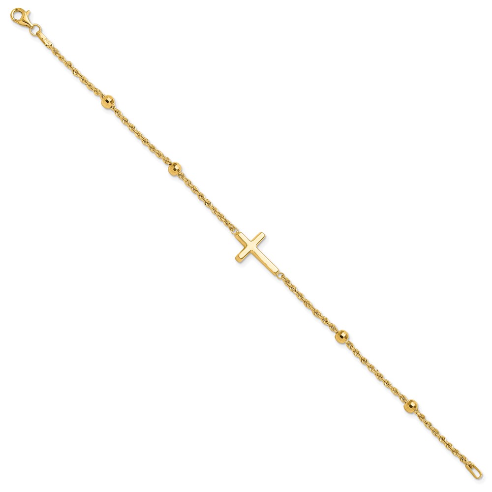 14k Mirror Beads and Cross 7.5 inch Bracelet