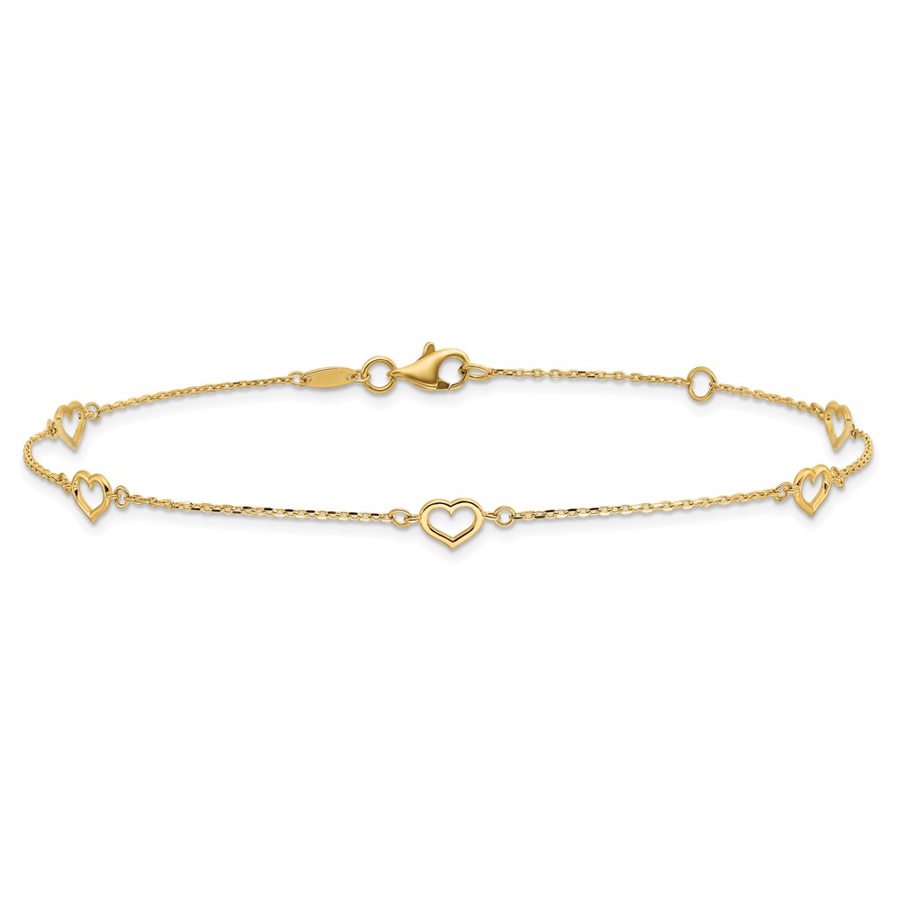 14K Open Heart and Chain 5-Station Plus Extender – Total Anklet
