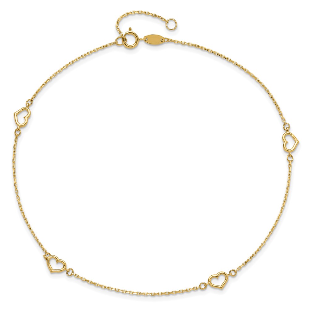 14K Fancy Open Hearts 3-Station Plus Extender – Total Anklet