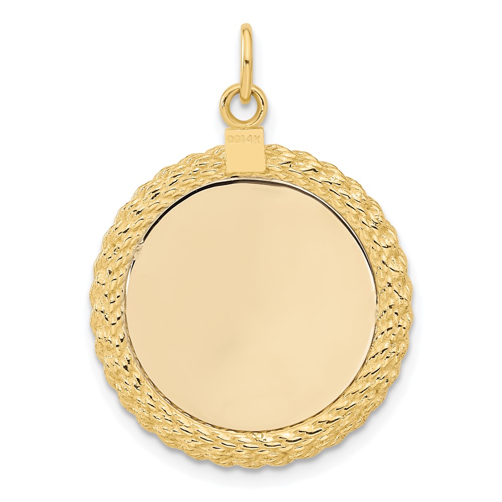 14k Plain .013 Gauge Round Engravable 27x21mm Disc with Rope Edge Charm