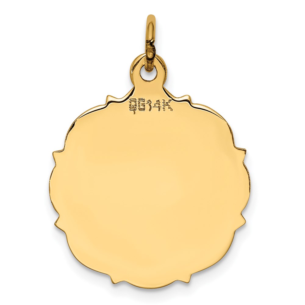 14k Plain with Fancy Edge .018 Gauge Engravable Round 20x18mm Disc Charm