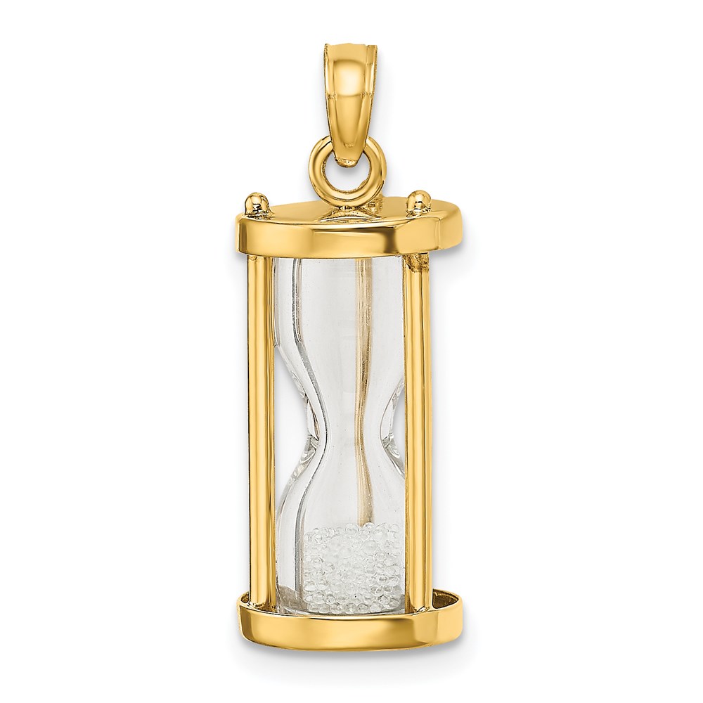 14k Polished 3-D Plastic Hourglass with Clear Beads Charm