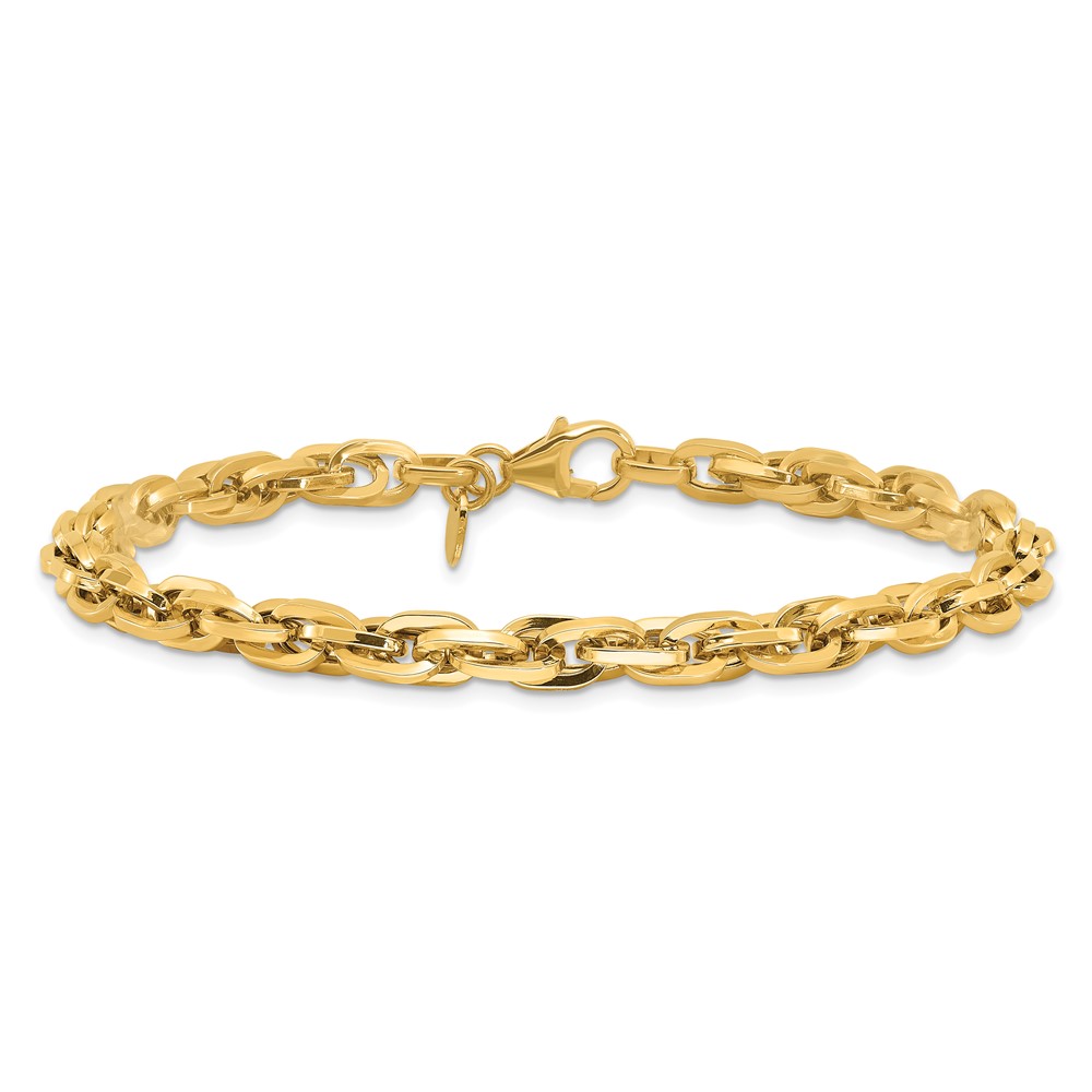 14K Polished 5mm Fancy Rope Link 7.5 inch Bracelet