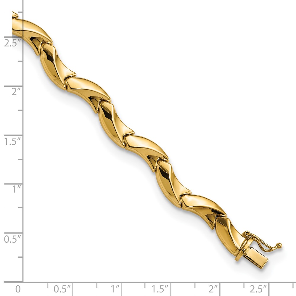 14K Polished 7.25mm Fancy Wavy Link 7.5 inch Bracelet