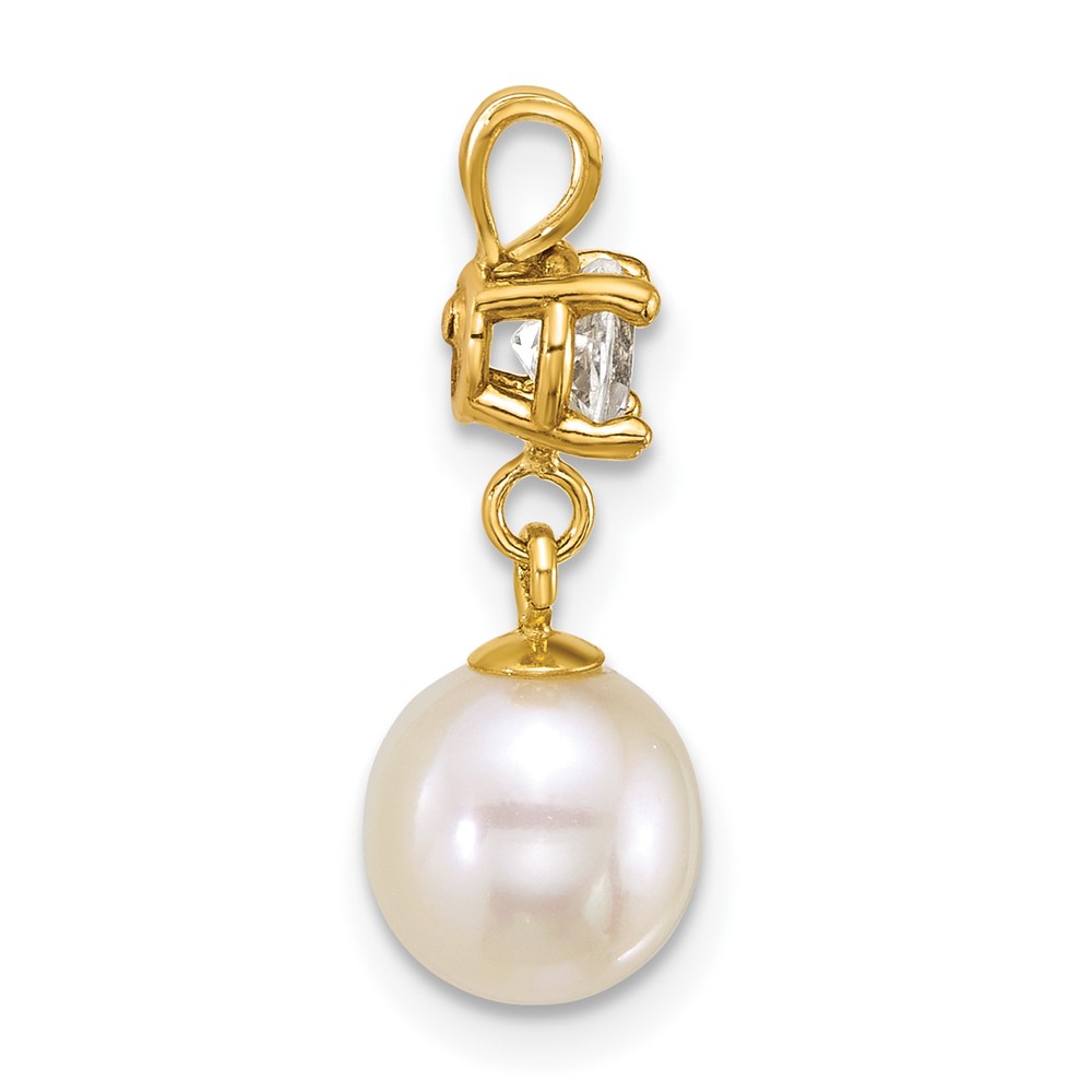 14k Polished 7-8mm Round White Freshwater Cultured Pearl Dangle and White Topaz Pendant