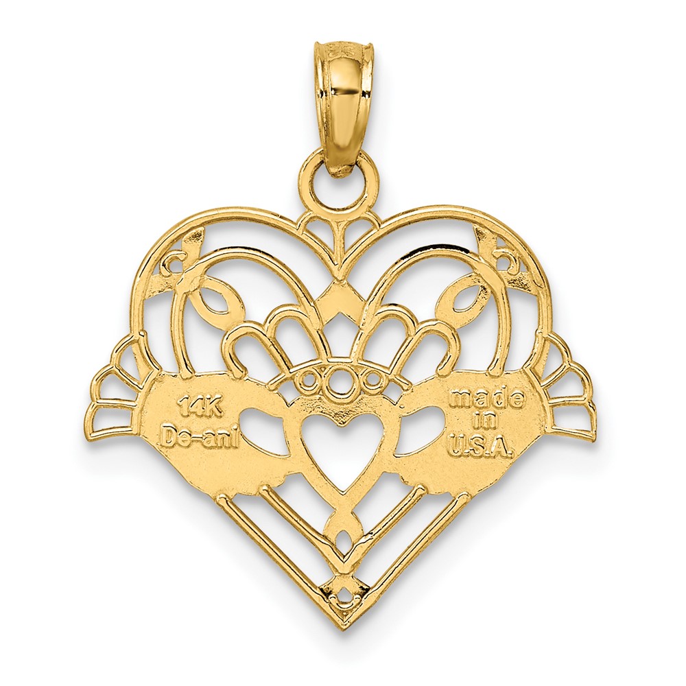 14K White Gold Polished and Beaded Claddagh In Heart Charm