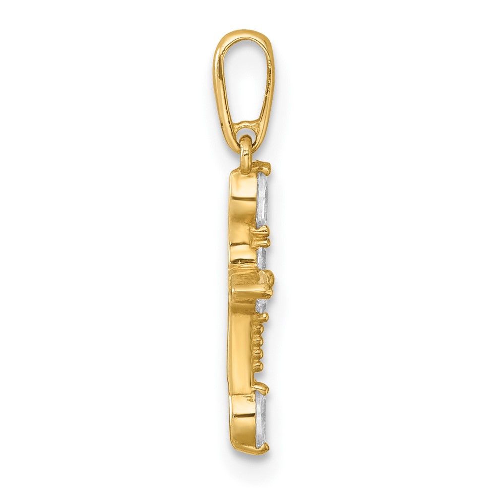14k Polished and Beaded Fancy CZ Cross Charm / Pendant