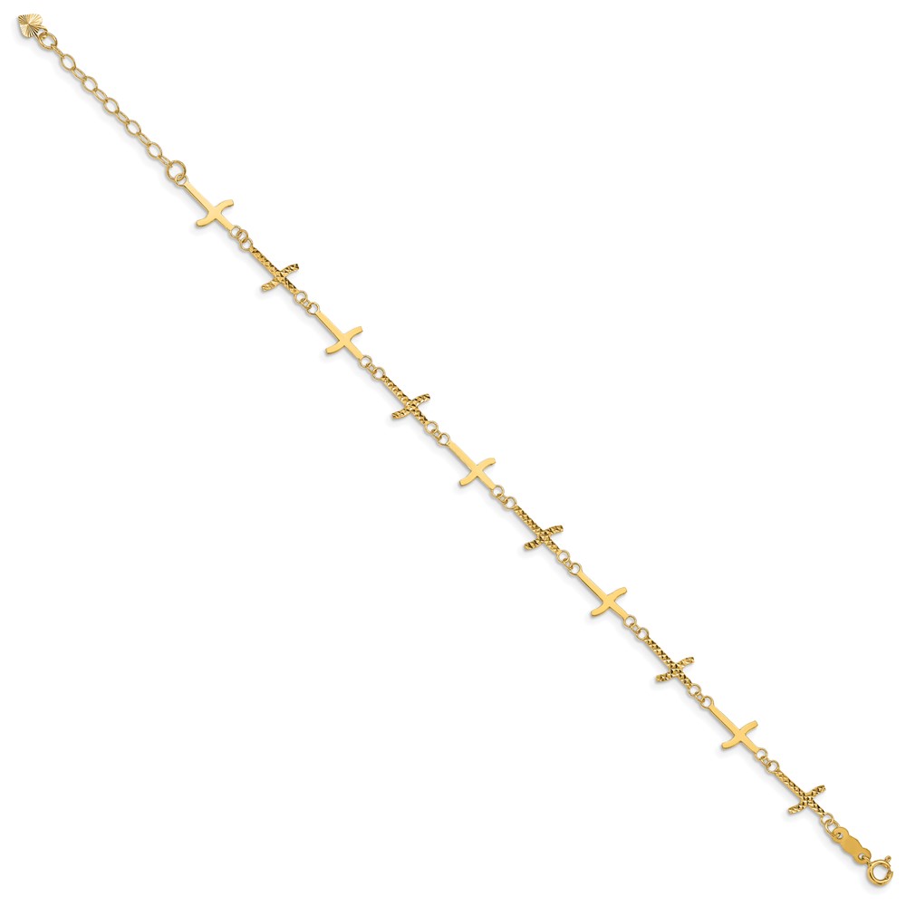 14k Polished and Diamond-cut Crosses 7 inch Bracelet Plus 1 inch Extender