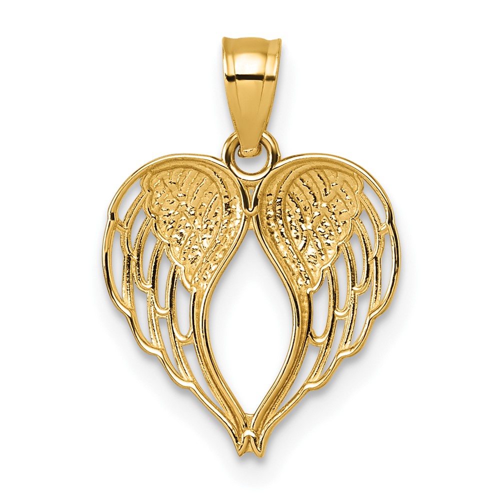 14k Polished and Diamond-cut Cut-out Wings In Heart Shape Pendant