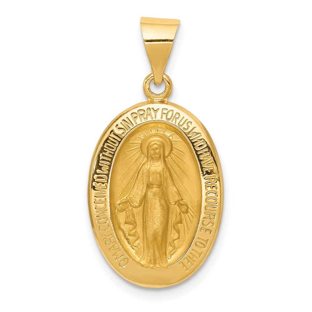 14k Polished and Satin Hollow Miraculous Medal Oval Pendant