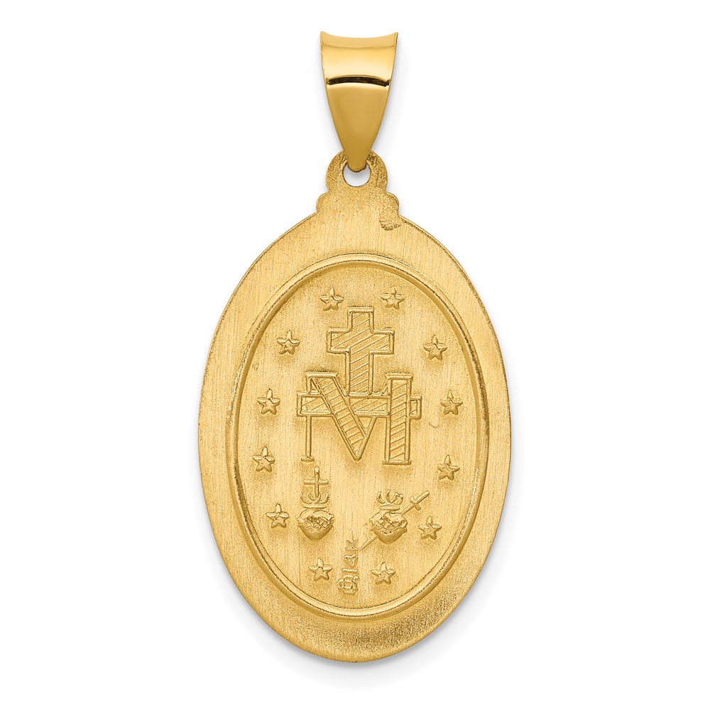 14k Polished and Satin Hollow Miraculous Medal Oval Pendant