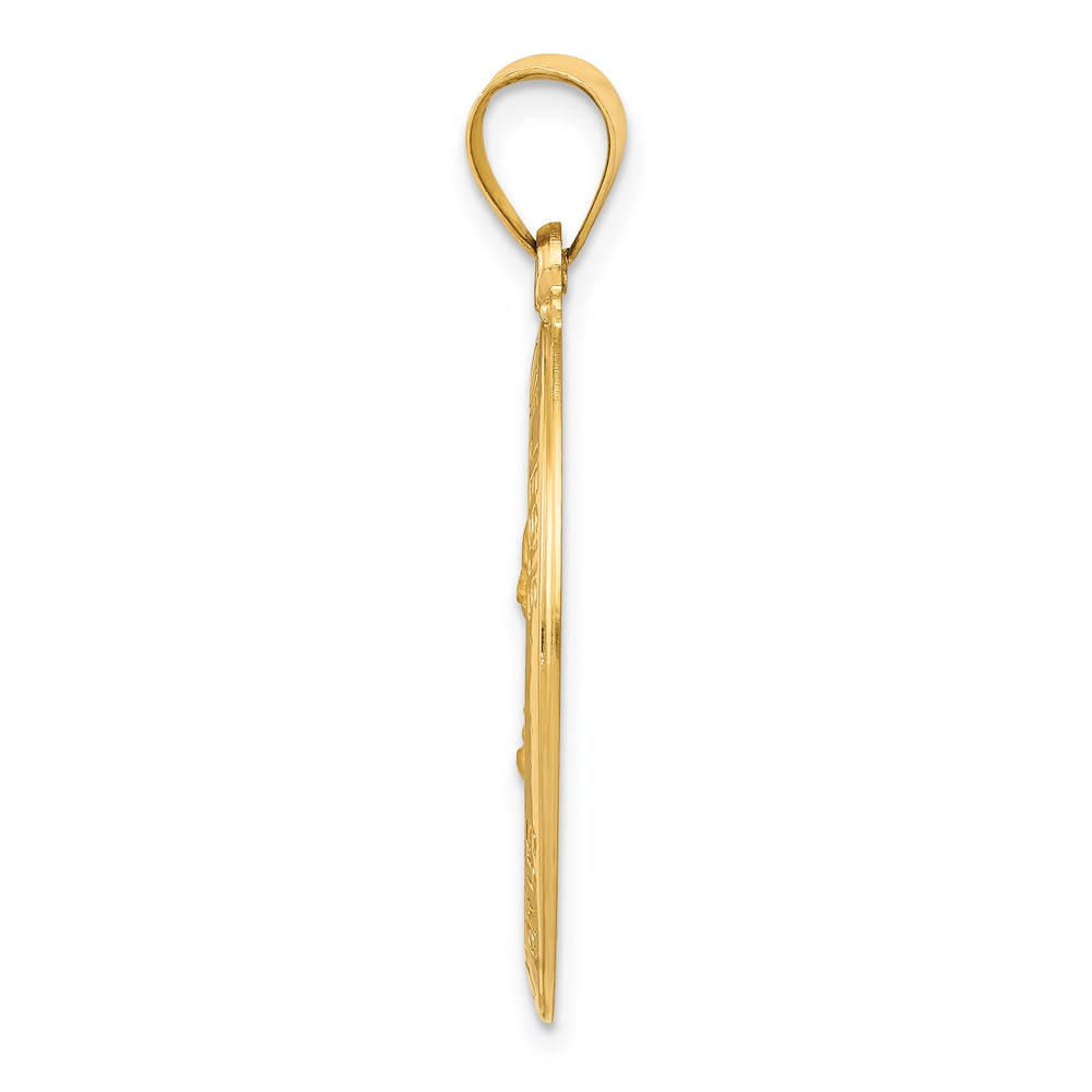 14k Polished and Satin Hollow Sacred Heart of Jesus Medal Oval Pendant