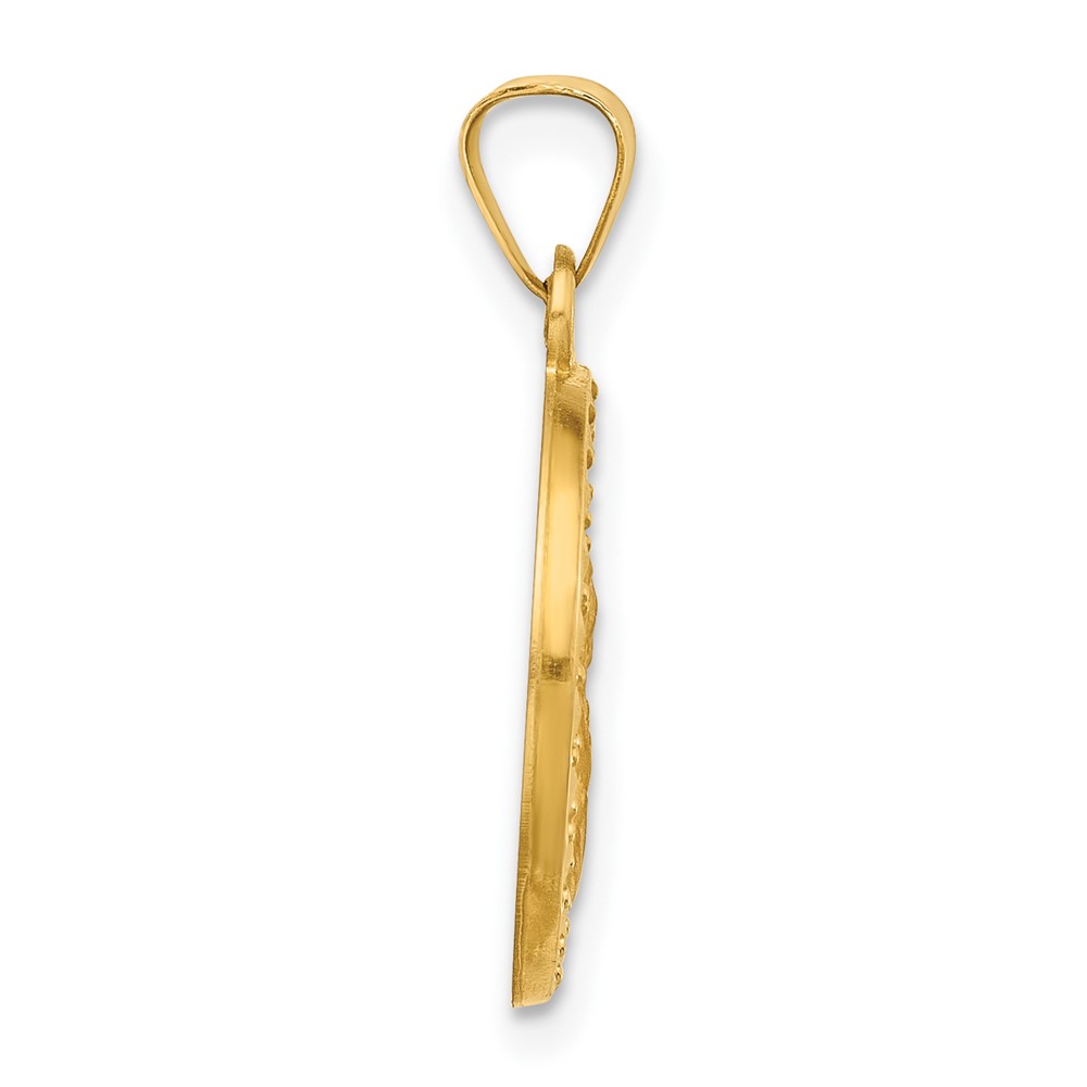 14K Polished and Satin Hollow Sacred Heart of Jesus Medal Round Pendant