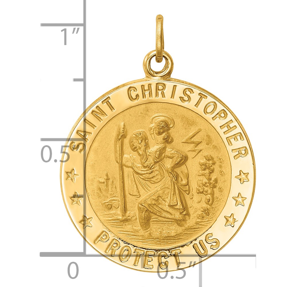14k Polished and Satin Medium Solid Round St. Christopher Medal Pendant