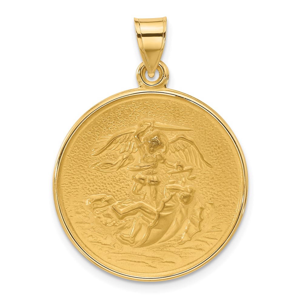 14k Polished and Satin Solid Large St. Michael Medal Round Pendant
