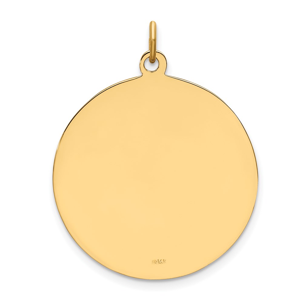 14k Polished and Satin Solid Medium Round Disc St. Christopher Medal Pendant