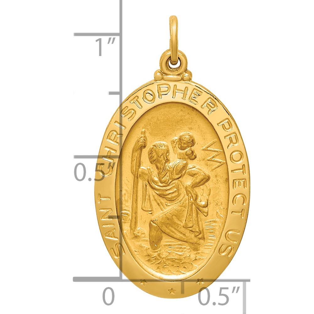 14k Polished and Satin Solid Medium St. Christopher Medal Oval Pendant
