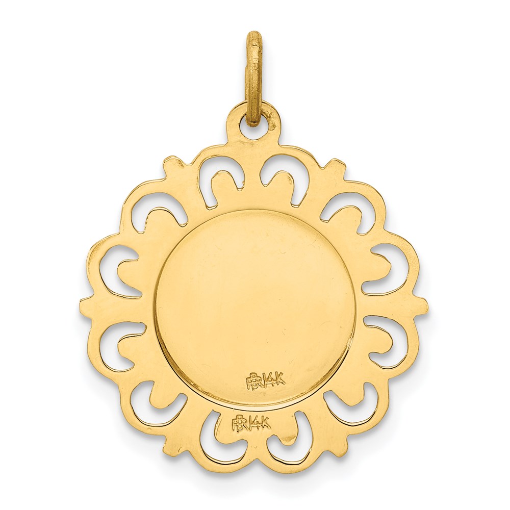 14k Polished and Satin Solid Our Lady of Mt. Carmel Medal Scalloped Edge Round Charm