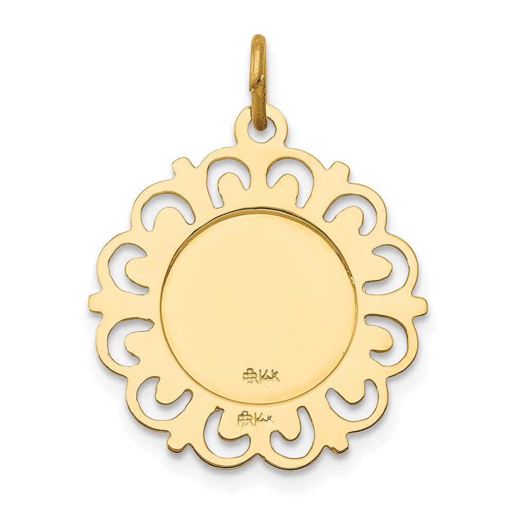 14k Polished and Satin Solid Saint Anthony Medal with Scalloped Edge Charm