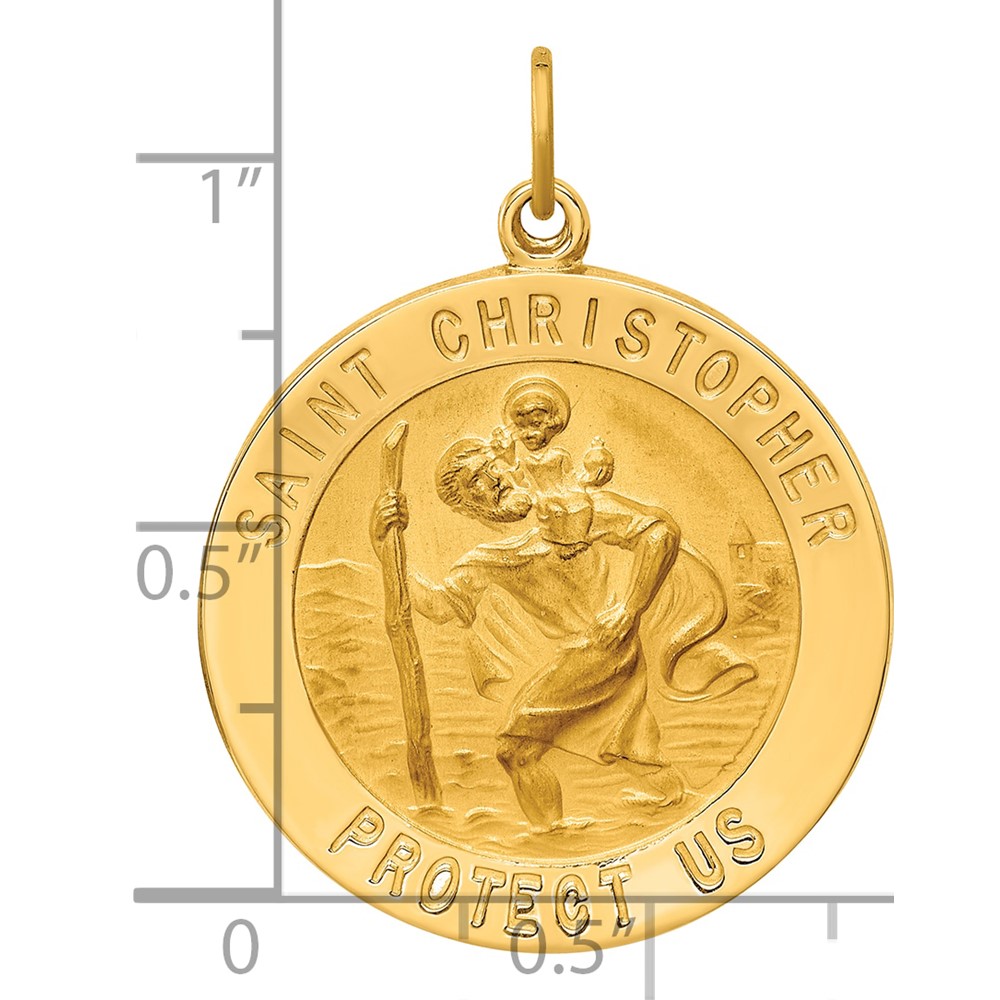 14k Polished and Satin Medium Solid Round St. Christopher Medal Pendant