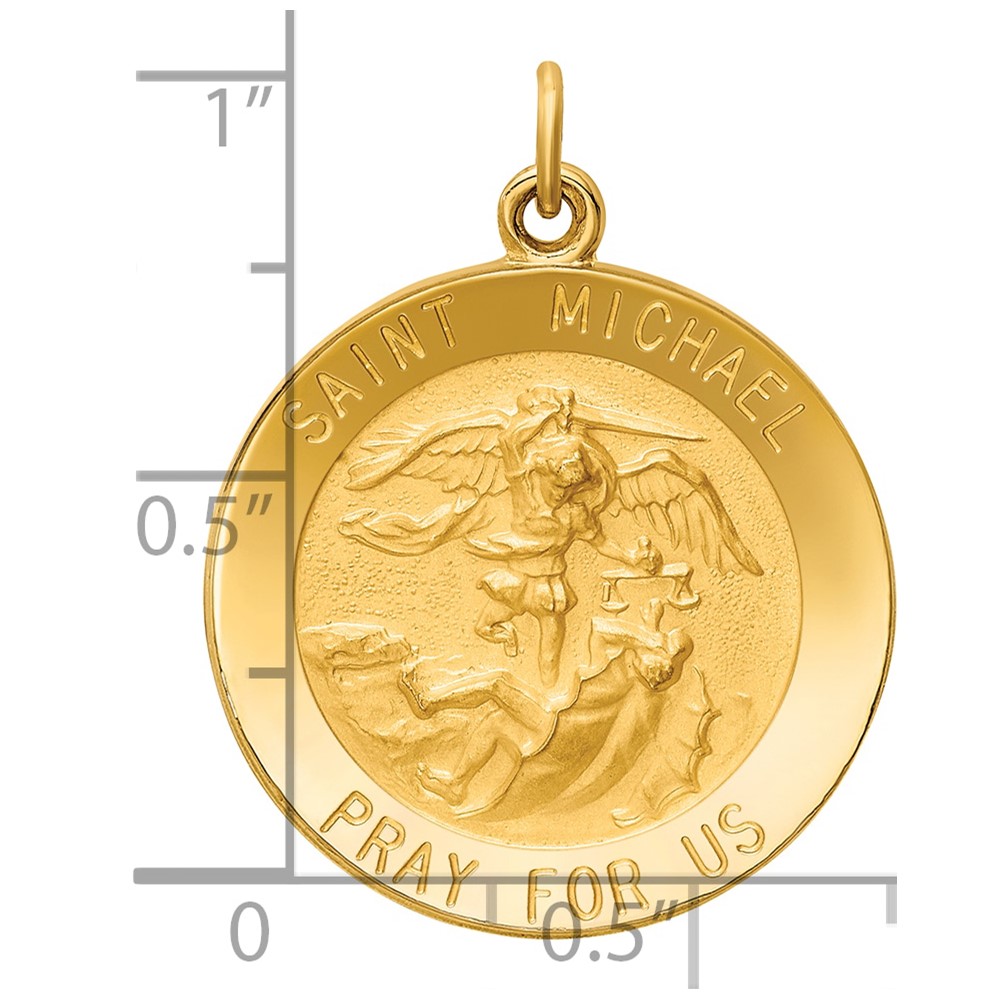 14k Polished and Satin Solid St. Michael Medal Round Pendant